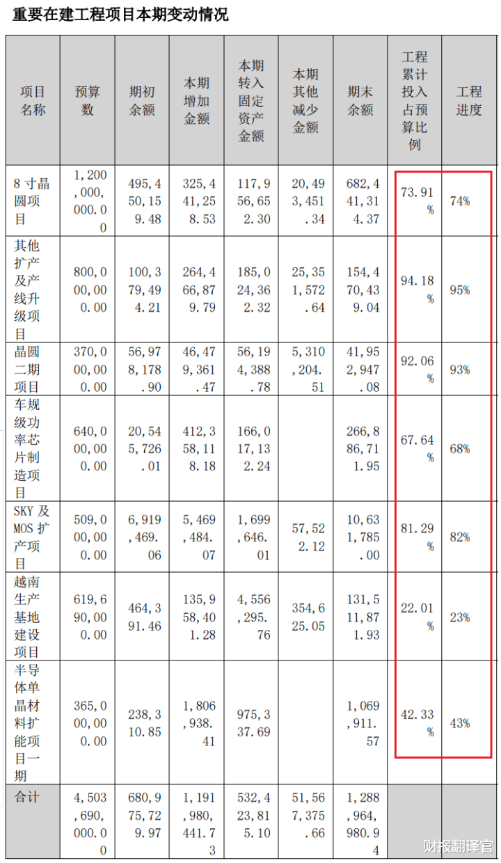 通过分析财官发现,目前,公司有7个半导体生产项目正在建设中,而这些项目的预计投资总额竟然超过了45亿人民币。
