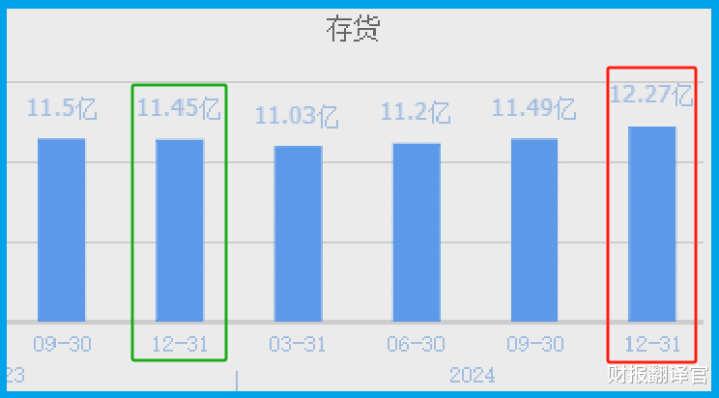 2023年公司的存货为10.45亿元,到了2024年这家企业的存货就达到了12.27亿元。这不仅同比增长了7%,还创出了历史新高。